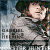 Description: Van Helsing holding his gatling crossbow